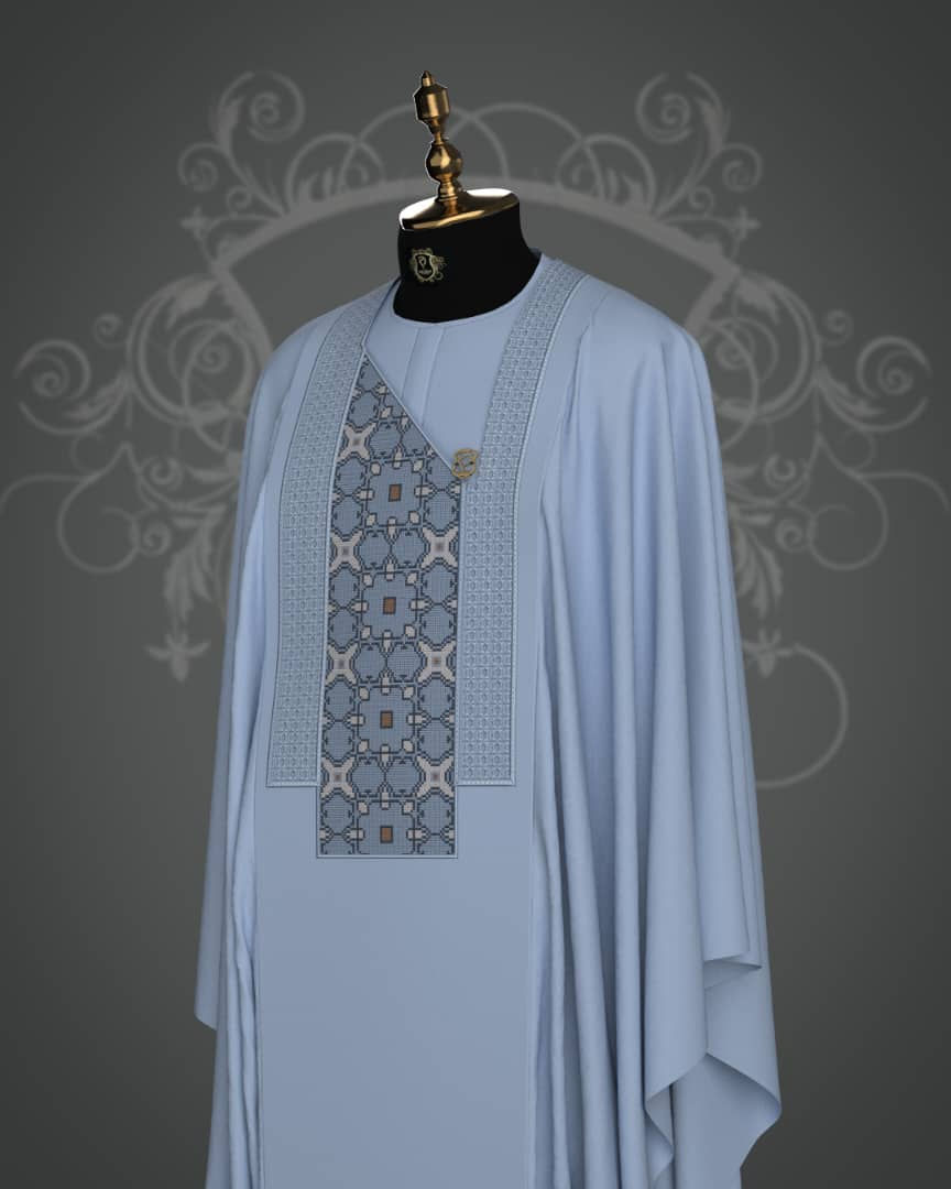 Exquisite Italian White Agbada Set adorned with refined gold patterns